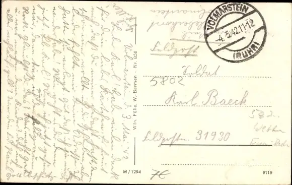 Zustand, siehe Scan, gelaufen, 1942 - ca 14 cm X 9 cm