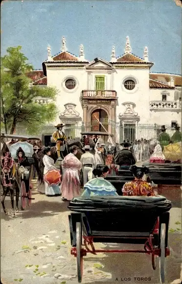 Ak Vor dem Stierkampf, Kutsche, Zuschauer