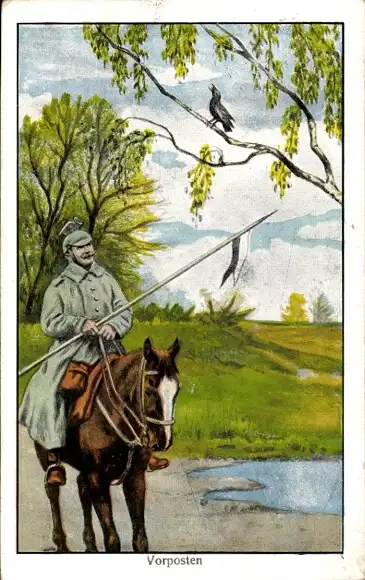 Ak Vorposten, Soldat zu Pferde, Fahne