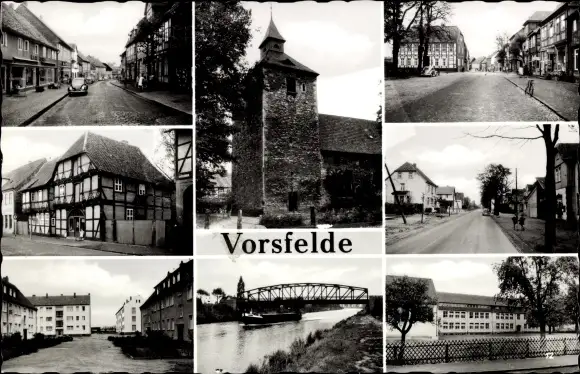 Ak Vorsfelde Wolfsburg in Niedersachsen, Fachwerkhäuser, Brücke, Turm