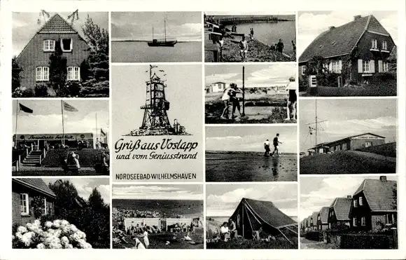 Ak Voslapp Wilhelmshaven, Geniusstrand, Zelt, Seeblick
