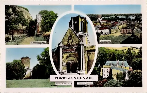 Ak Vouvant Vendée, Foret, vue generale, Tour, Chateau, Eglise