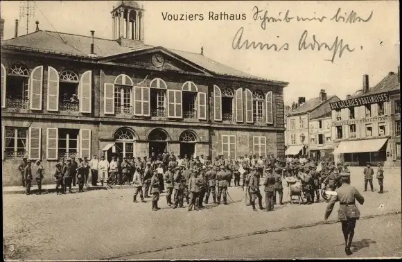 Ak Vouziers Ardennes, Blick auf das Rathaus, Soldaten