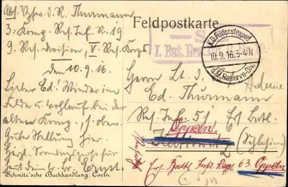 Zustand, siehe Scan, gelaufen, 1916 - ca 14 cm X 9 cm