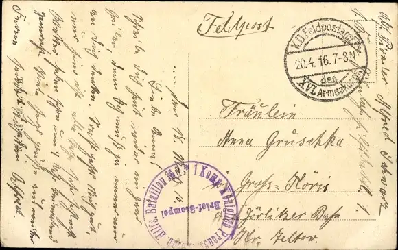 Zustand, siehe Scan, gelaufen, 1916 - ca 14 cm X 9 cm