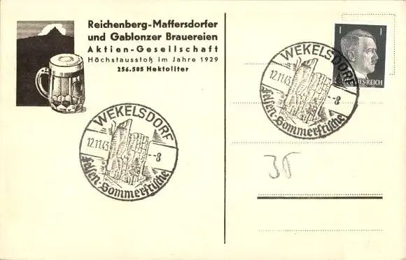 Ansichtskarte, Postkarte, Brauerei, Brauhaus, Liberec, Reichenberg