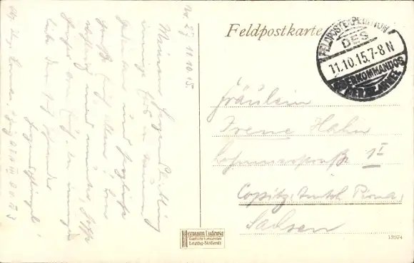 Zustand, siehe Scan, gelaufen, 1915 - ca 14 cm X 9 cm
