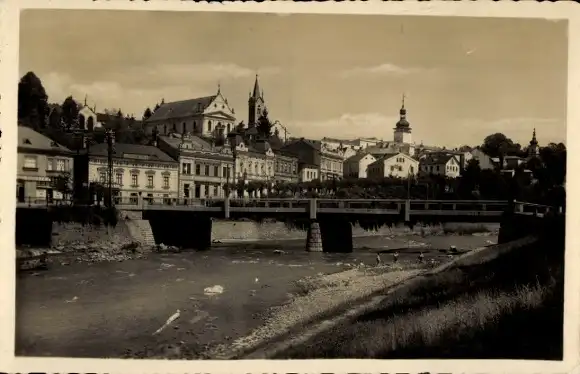 Ak Vsetín Wsetin Region Zlin, Teilansicht, Fluss, Brücke