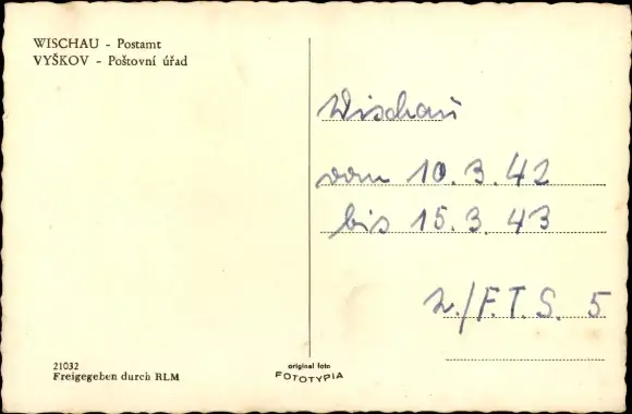 Ak Vyškov Wischau Südmähren, Postamt