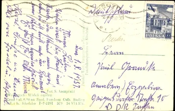 Zustand, siehe Scan, gelaufen, 1957 - ca 14 cm X 9 cm