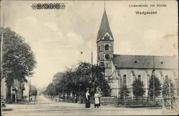 Ak Wadgassen im Saarland, Lindenstraße, Kirche