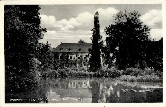 Ak Wächtersbach in Hessen, Schlossweiher, Teilansicht