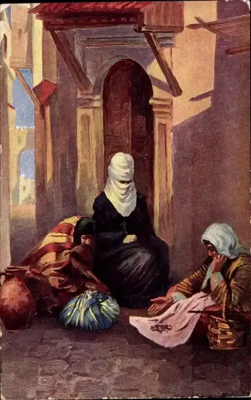 Ak Wahrsagerin, Verschleierte Frau, Karten