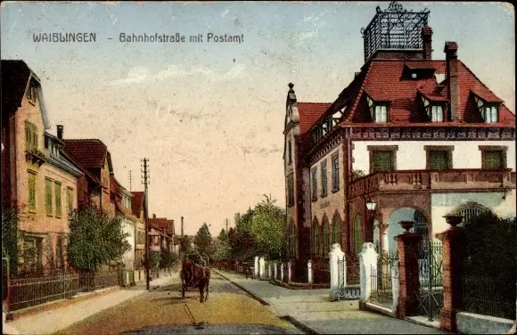 Ak Waiblingen in Württemberg, Bahnhofstraße, Postamt