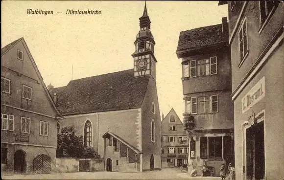 Ak Waiblingen in Württemberg, Nikolauskirche, Geschäft K. Oberamt