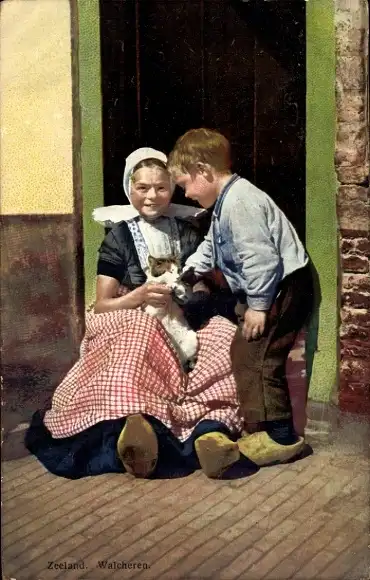 Ak Walcheren Zeeland, Volkstrachten, Katze