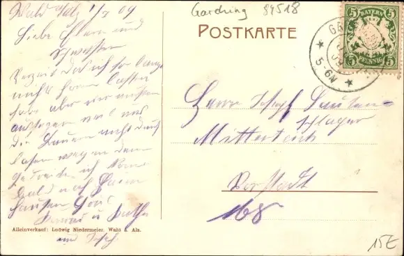 Zustand, siehe Scan, gelaufen, 1909 - ca 14 cm X 9 cm