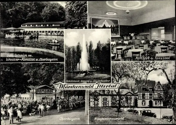 Ak Wald im Rheinl. Solingen, Ittertal Weck, Märchenwald, Gondelteich, Fontäne, Restaurant Oberbayern
