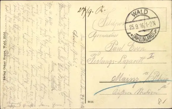 Zustand, siehe Scan, gelaufen, 1916 - ca 14 cm X 9 cm