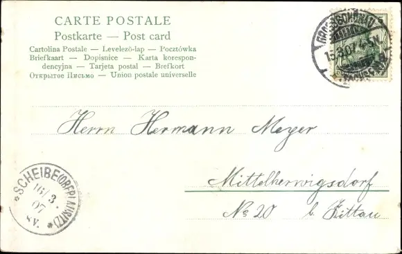 Zustand, siehe Scan, gelaufen, 1907 - ca 9 cm X 14 cm
