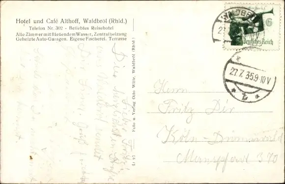Ak Waldbröl im Oberbergischen Land, Hotel und Café Althoff