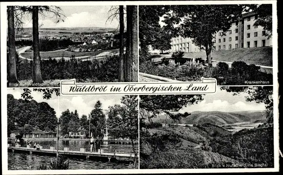 Ak Waldbröl im Oberbergischen Land, Teilansicht, Krankenhaus, Strandbad, Landschaft