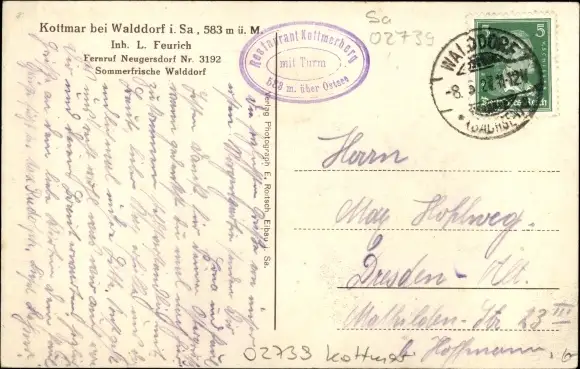 Ak Walddorf Kottmar in der Oberlausitz, Kottmarbaude mit Aussichtsturm, Inh. L. Feurich