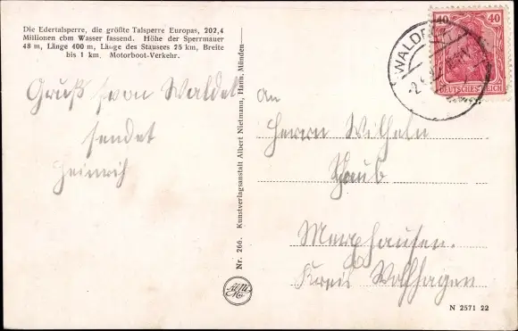 Ak Waldeck am Edersee Hessen, Edertalsperre, Schloss Waldeck, Sperrmauer