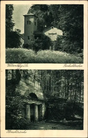Ak Waldenburg in Sachsen, Parkschlösschen, Hirschtränke