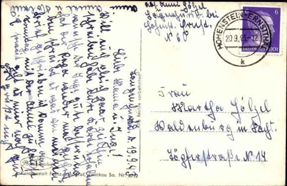 Zustand, siehe Scan, gelaufen, 1943 - ca 14 cm X 9 cm