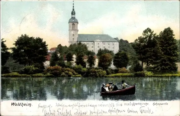 Ak Waldheim in Mittelsachsen, Kahnpartie, Stadtkirche, Ruderboot