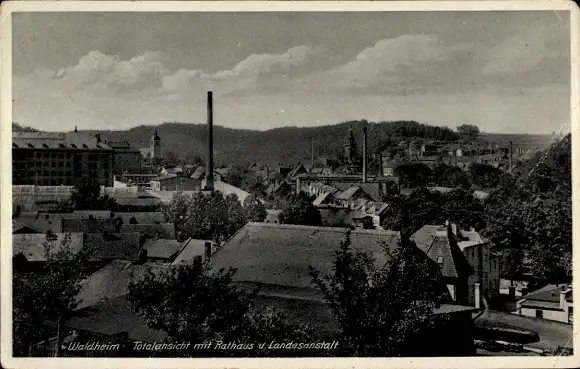 Ak Waldheim in Mittelsachsen, Totalansicht, Rathaus, Landesanstalt