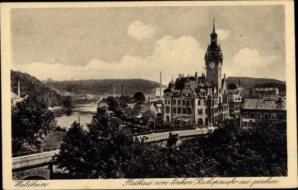 Ak Waldheim in Sachsen, Rathaus, Zschopauufer, Brücke