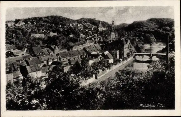 Ak Waldheim in Sachsen, Teilansicht von oben