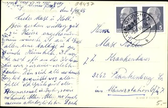 gelaufen 1968, Eckknick rechts unten, sonst guter Zustand