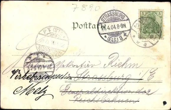 Zustand, siehe Scan, gelaufen, 1904 - ca 14 cm X 9 cm