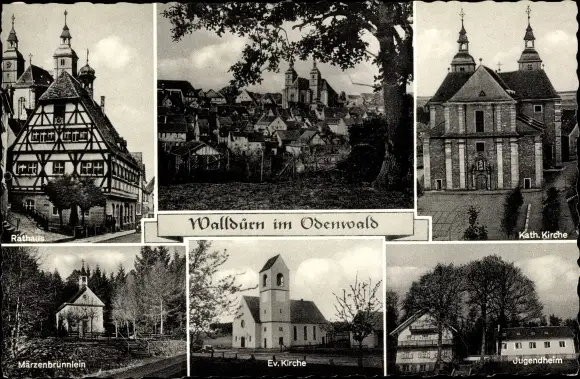 Ak Walldürn im Odenwald, Kirchen, Rathaus, Märzenbrünnlein, Jugendheim
