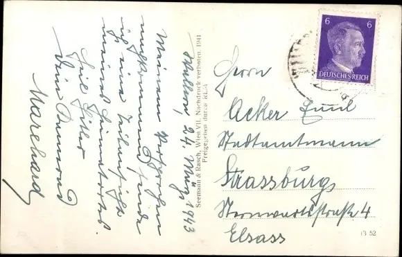 Zustand, siehe Scan, gelaufen, 1943 - ca 14 cm X 9 cm