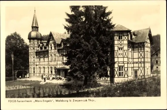 Ak Walsburg Eßbach in Thüringen, FDGB-Ferienheim Marx Engels, Fachwerkhaus