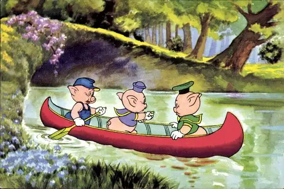 Ak Walt Disney, Drei kleine Schweinchen in einem Kanu