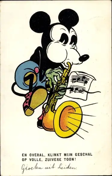 Ak Walt Disney, Mickey Maus spielt Saxophon
