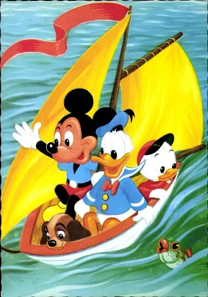 Ak Walt Disney, Micky Maus, Donald Duck, Segelboot