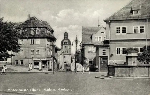Ak Waltershausen in Thüringen, Markt, Nikolaustor