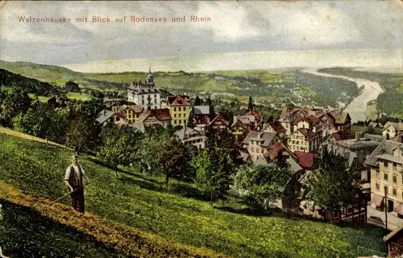 Ak Walzenhausen Appenzell Außerrhoden, Blick auf Bodensee und Rhein