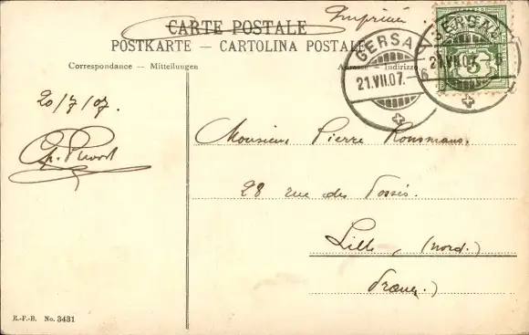 Zustand, siehe Scan, gelaufen, 1907 - ca 14 cm X 9 cm