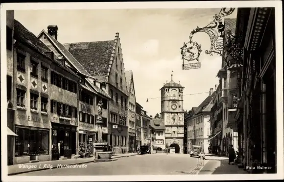 Ak Wangen im Allgäu, Herrenstraße, Geschäfte, Tor