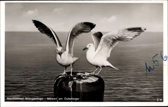 Ak Wangerooge in Friesland, Nordseebad, Möwen am Ostanleger, Meer