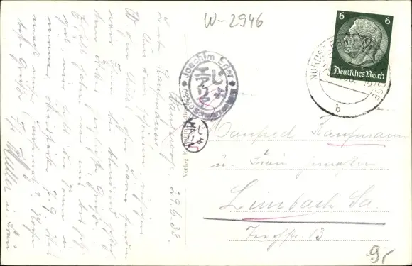 Zustand, siehe Scan, gelaufen, 1938 - ca 14 cm X 9 cm
