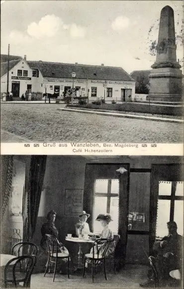 Ak Wanzleben Börde in Sachsen Anhalt, Cafe Hohenzollern, Innenansicht, Denkmal