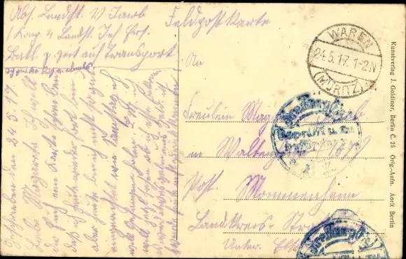 Zustand, siehe Scan, gelaufen, 1917 - ca 14 cm X 9 cm